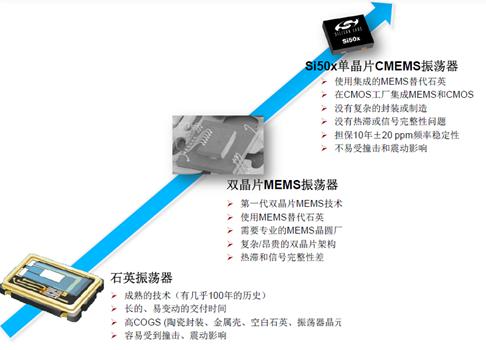 2010年,Silicon Labs通过收购一家名为Silicon Clocks的公司,获得了在大批量生产中把MEMS架构直接构建于标准CMOS晶圆上,实现完全集成的、高可靠性的CMEMS技术。“在标准CMOS芯片上集成高精度振荡器的梦想,已经由Silicon Labs公司和他们最新推出的Si50x CMEMS振荡器系列变为现实”。Steven Zhang 表示。